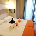 Hotel nabízí 14 pokojů vybavených mini-ledničkou, minibarem a ovládáním klimatizace, a má všechny památky města Sitges ve snadné dostupnosti. Tyto pokoje v Hostal Termes se vyznačují i dlaždicovou podlahou.